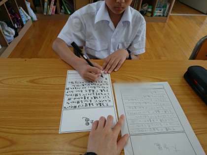 学年で取り組んでいる壁新聞の清書を、引き続きわかくさ学級の授業でもがんばっています!