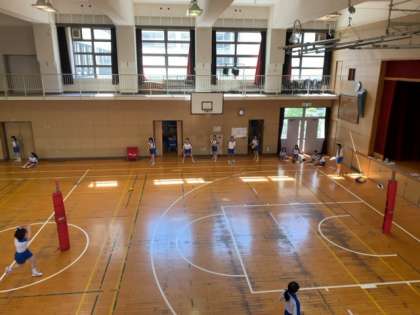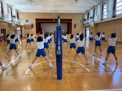 6限目、2年生1・2組女子は大きな声で体操ができており、動きもとてもすばやく行動できています。