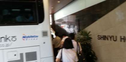 選択体験学習に向けて、体験別にバスに乗り込みます。