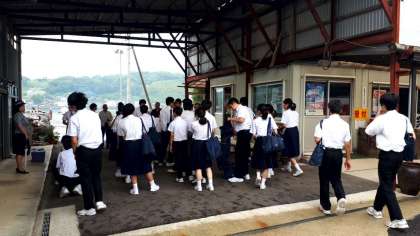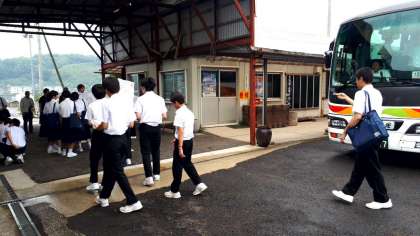 バスが到着しました。小雨が降っていますが、大丈夫です。
