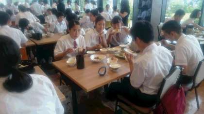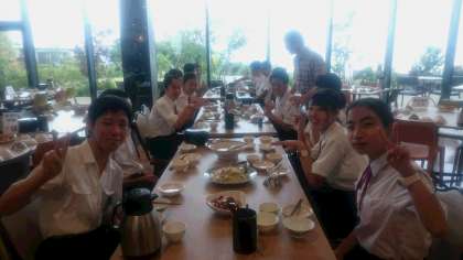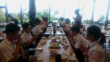 3年生 修学旅行 昼食1 〜アスパラ収穫チーム〜