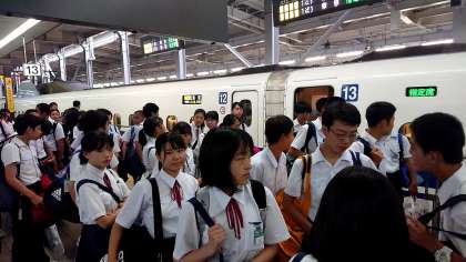 3年生 修学旅行 博多駅 新幹線ホーム1