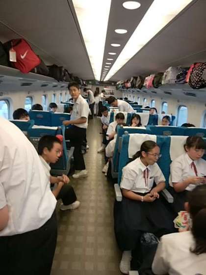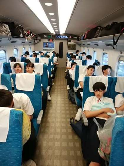 新幹線は広島を過ぎました。生徒たちの交流は、まだまだ続いています。