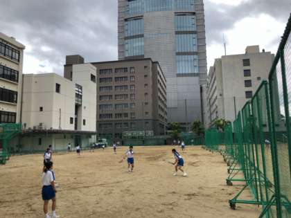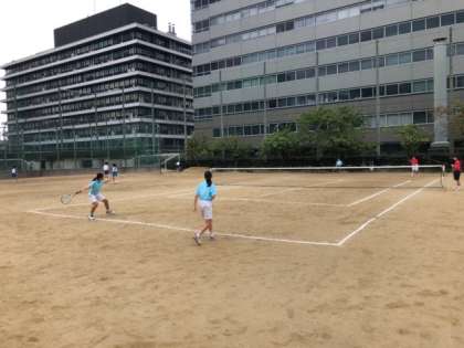 天気が心配されましたが、ソフトテニス部はグランドを使用して練習することができています。