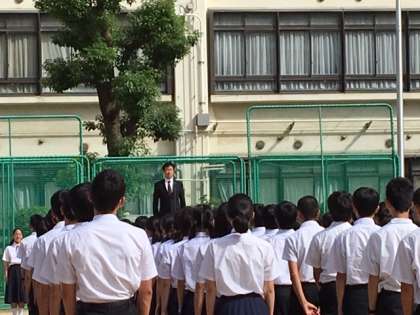 昨日、早朝に発生した吹田市の事件が、今日の早朝に犯人逮捕されました。犯人の逃走が続いていれば、学校は臨時休業措置の予定でしたが、無事に通常通り、学校を開くことができました。皆さんも不安や動揺があったと思いますが、大きな混乱なく、登校してくれました。ただ、警察官の方が今もなお意識不明の重体であることに心から一日も早い回復を祈るばかりです。