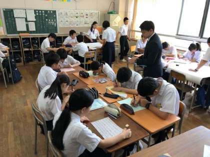 2年5組には、本日から東中学校でインターン実習をされる先生も授業に参加されています。各班の取り組む様子を見て感心されています。頑張れ2年生!