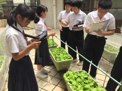 GW明けから植えた大阪シロナがスクスクと成長しています。実習ではタブレットを使って観察記録を残し、肥料や間引きなどの工夫を班で考えて行っています!