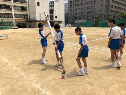 3時間目は2年3・4組の最期のバレーボールです。2年生の体育では授業内容はもちろんのこと、その学習内容の準備と片付けも生徒たちが自ら率先して行うように取り組んでいます。将来、バレーボールをすることがあった時に、必要な備品の把握、コートづくりなどスポーツ全般を理解して生涯にわたりスポーツに親しむ姿勢を身につけています。役割分担をして素早く準備ができています。