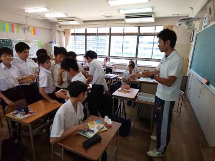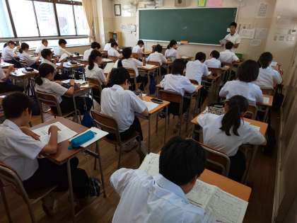 体力テストが終わり、各自の記録を入力した短冊が先生から配られました。その記録を2年生が対象となる「全国体力・運動能力等習慣調査」生徒質問紙に記入していきます。
