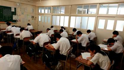 2限目は英語のテストです。まずはリスニングテストです。メモをとりながらしっかり聞いているようです。最後まで集中して頑張れ!