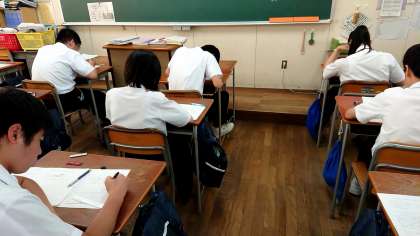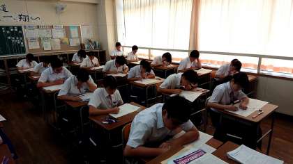本日最後のテストは美術です。立体となった文字の足らない線をたす問題や、動物の毛並みを描く、円柱に丸みをもたせるようかげを描くなど実技の試験もあります。諦めずに頑張ってください!