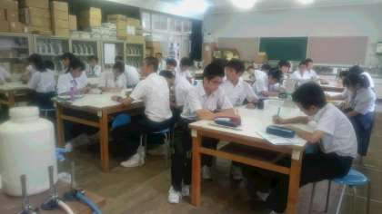第1理科室では、大阪高校版「大科学実験」の授業が行われます。