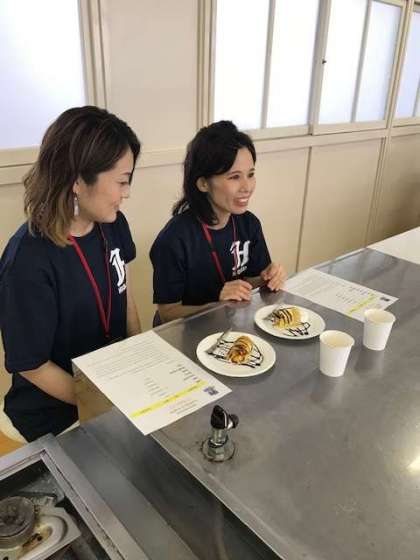 見本で作ったクレープはPTAのお母様に試食していただきました。