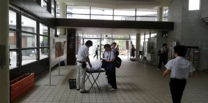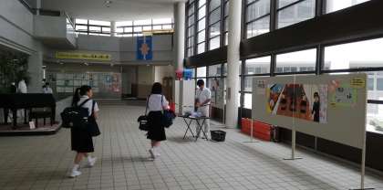 玄関ホールにぞくぞくと生徒が集まっています。