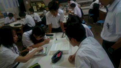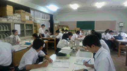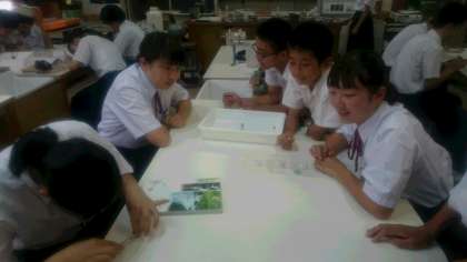 6種類の水溶液について班で分担して調べ、各班から結果を発表してもらって実験データを共有しました。