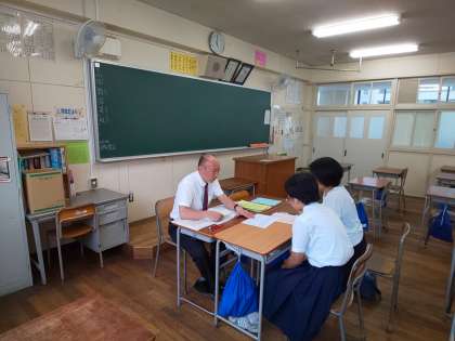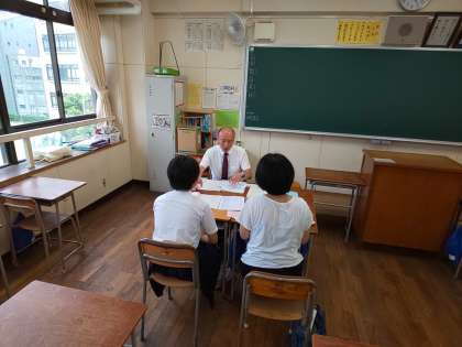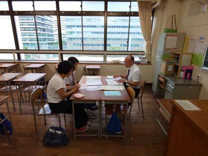 3年1組の教室では、1学期の振り返りとともに進路に向けた懇談が行われています。