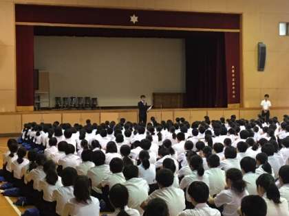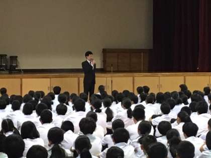 平成31年度、4月3日の入学式で新1年生を迎え、4月8日には、始業式で全校生徒が揃い、1学期がスタートしました。改元があり、5月から令和の時代となり、6月にはG20があり、いろんな面で節目となった学期でしたが、早や3か月余りが過ぎ、本日終業式を迎えました。生徒の皆さんは、学習活動をはじめ、クラブ活動、各学年の行事や取り組みに、仲間と協力しながら一生懸命に頑張ってくれました。