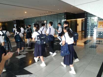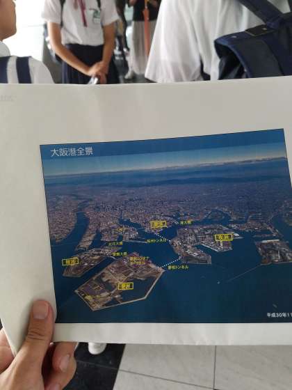 生徒会4名が大阪咲州庁舎にて、事前学習会に参加しています。はじめに展望台で見学をしています。