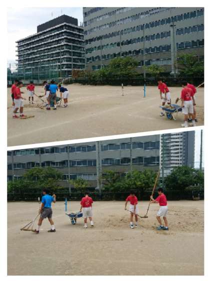 早朝からみんなで協力してグラウンド整備をし、2面つくることができました。