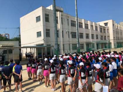 本日、大正東中学校にて先日雨天のため延期されていた女子のブロック予選会の団体戦が行われます。