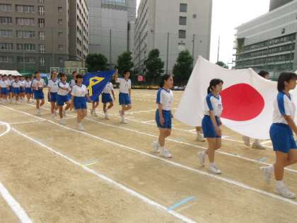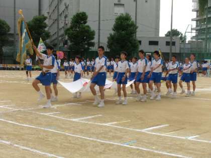 続いて、吹奏楽部に引き続き、生徒会の行進と続きます。