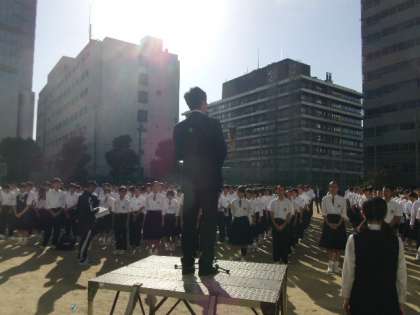 すがすがしい、雲一つ無い秋晴れの下、本日全校集会がありました。