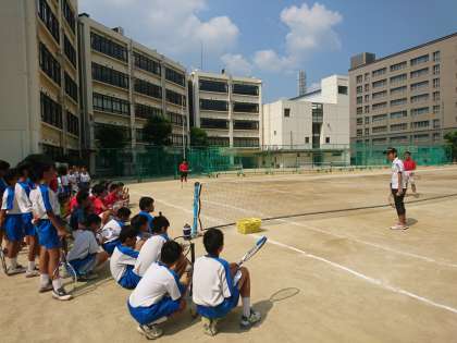 レシーブ練習では、前衛・後衛の位置、どこに返球するとよいか等を確認しました。1年生は、まずコート内に返せるように、基本を繰り返し練習していきましょう!