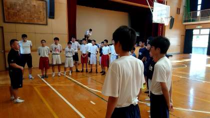 選考会同様、東中学校バスケットボール部の3年生が1・2年生の選抜選手の練習相手を任されています。さすがに上級生とあって力の差を見せています。