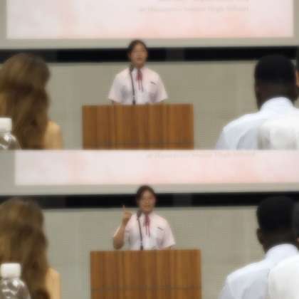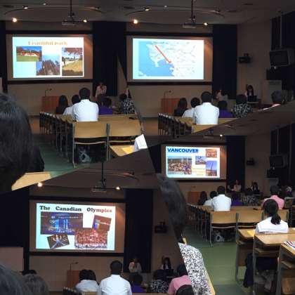 審査結果を待っている間に、高校生によるカナダ語学研修の英語プレゼンテーションを聞きました。