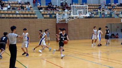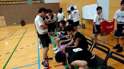 本日最後のゲームは大阪市の新北野中学校との対戦です。大きな選手がそろっています。頑張れ東中学校バスケットボール部!