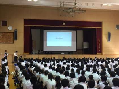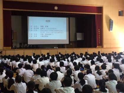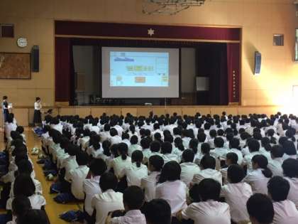 始業式の後、明日から始まる給食の流れと動きの説明がありました。よく確認しておきましょう!