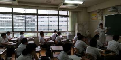 中西先生が「誰かのために」という資料を用いて授業されています。