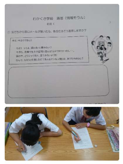 悪口メールが届いたら、どんな気持ちになる?そのメールにどう返信する?などを一緒に考えました。