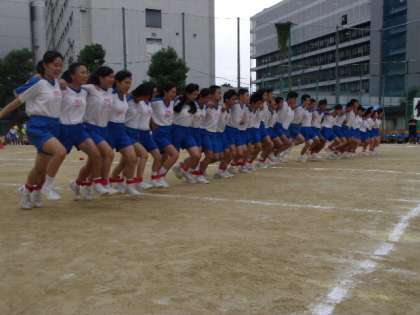 前を駆け抜ける一糸乱れぬ生徒の姿をを見て、会場からはウォーという歓声が上がりました。