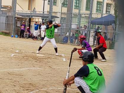 ピッチングも抜群、バッティングもボールをよく見て狙いを絞り、長打が出ました。