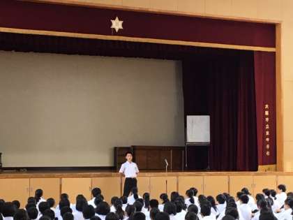 校長先生からの話では、立秋が過ぎ、少しずつ季節が変化しています。皆さんも少しずつ成長しているのではないでしょうか。毎日の積み重ねが大切です。この2学期は体育大会などたくさんの行事もあります。成長した姿を存分に見せてください!