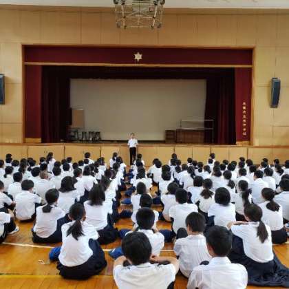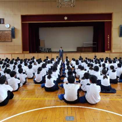 最初に風紀委員会から目標の発表がありました。名札の忘れ物が多いので、毎日家を出るときに気を付けるようにしましょう。