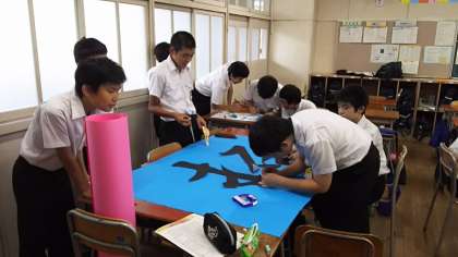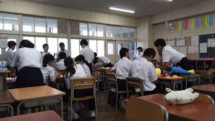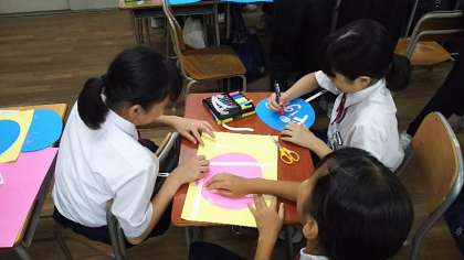 2年生では、今日の6限目も体育大会の取り組みを各クラスで行っています。グッズも完成に近づいてきました。