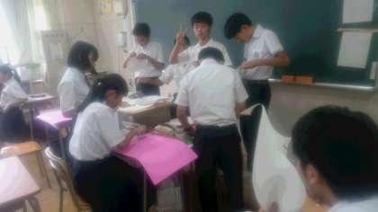 縦割り応援の構成を練っています。どんな応援合戦になるかは3年生の腕にかかっています。頑張れ3年生!