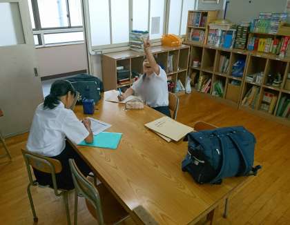 先生と下校時間を相談したうえで、わかくさ学級で宿題や常置委員会の仕事に取り組んでいます。