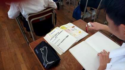 写真は1組の様子です。「ユニバーサルデザイン=すべての人にとって使いやすいデザイン」について学んでいます。