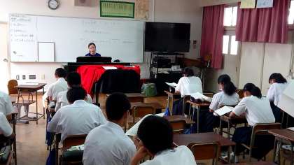 3組は音楽です。合唱コンクールでの課題曲「手紙」の歌唱指導が行われています。