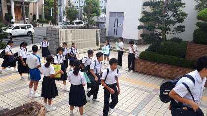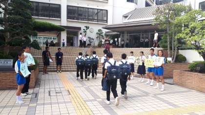 今日も猛暑日の予報で秋の気配がなかなか感じられません。体育大会の学年練習が始まっています。暑さに負けずに頑張りましょう。東中生が元気に登校してきました!