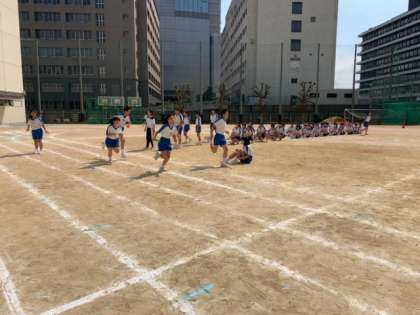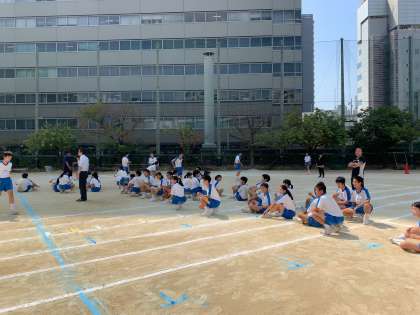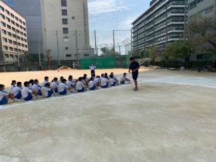 3年生は本日の2限目、1・2・5組の合同で学年種目の練習を行っています。
