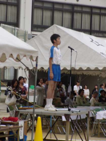 生徒会による国旗市旗の降納です。そして生徒会副会長による閉会宣言で「涙と感動の第27回体育大会」が幕を閉じました。