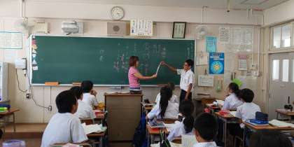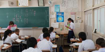 2年4組 国語の授業では、みんなの前で発表活動が行われています。