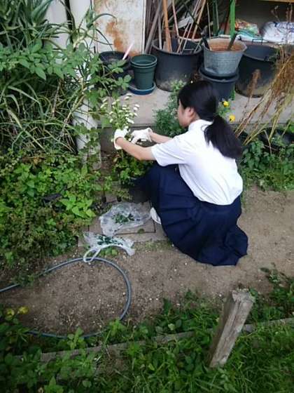 花を摘み取り、花束にして持ち帰る部員もいました。