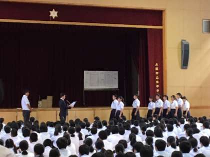 体育大会実行委員からの連絡と表彰状の伝達の後、校長先生からのお話がありました。体育大会が近くなり、実行委員をはじめ、皆さんがよく頑張っている様子が見られます。皆さんを支えてくださっている人たちに感謝を忘れず、成功させましょう!