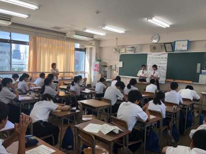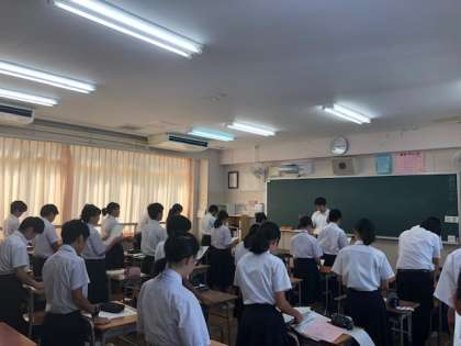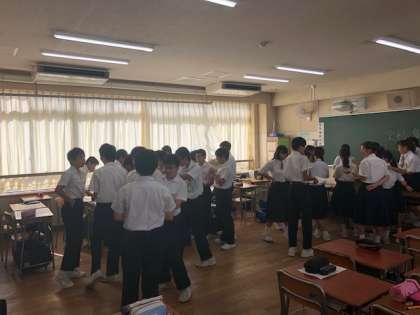 1限目は、体育大会のクラス応援の練習を各クラスで取り組んでいます。