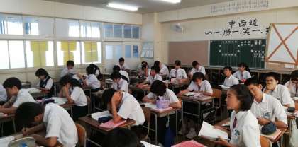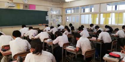 こちも「おくのほそ道」序段の暗誦筆記テストに臨んでいます。